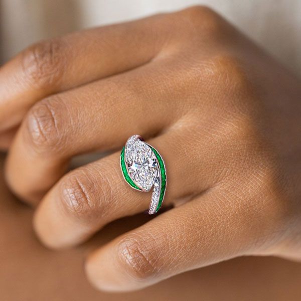 Italo Emerald Ring Marquise Reduce Classic Engagement Ring Inexpensive