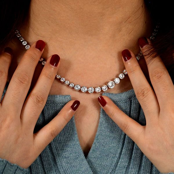 Tennis necklaces are named as a result of jewelry designers had created a necklace model to match the tennis bracelets.