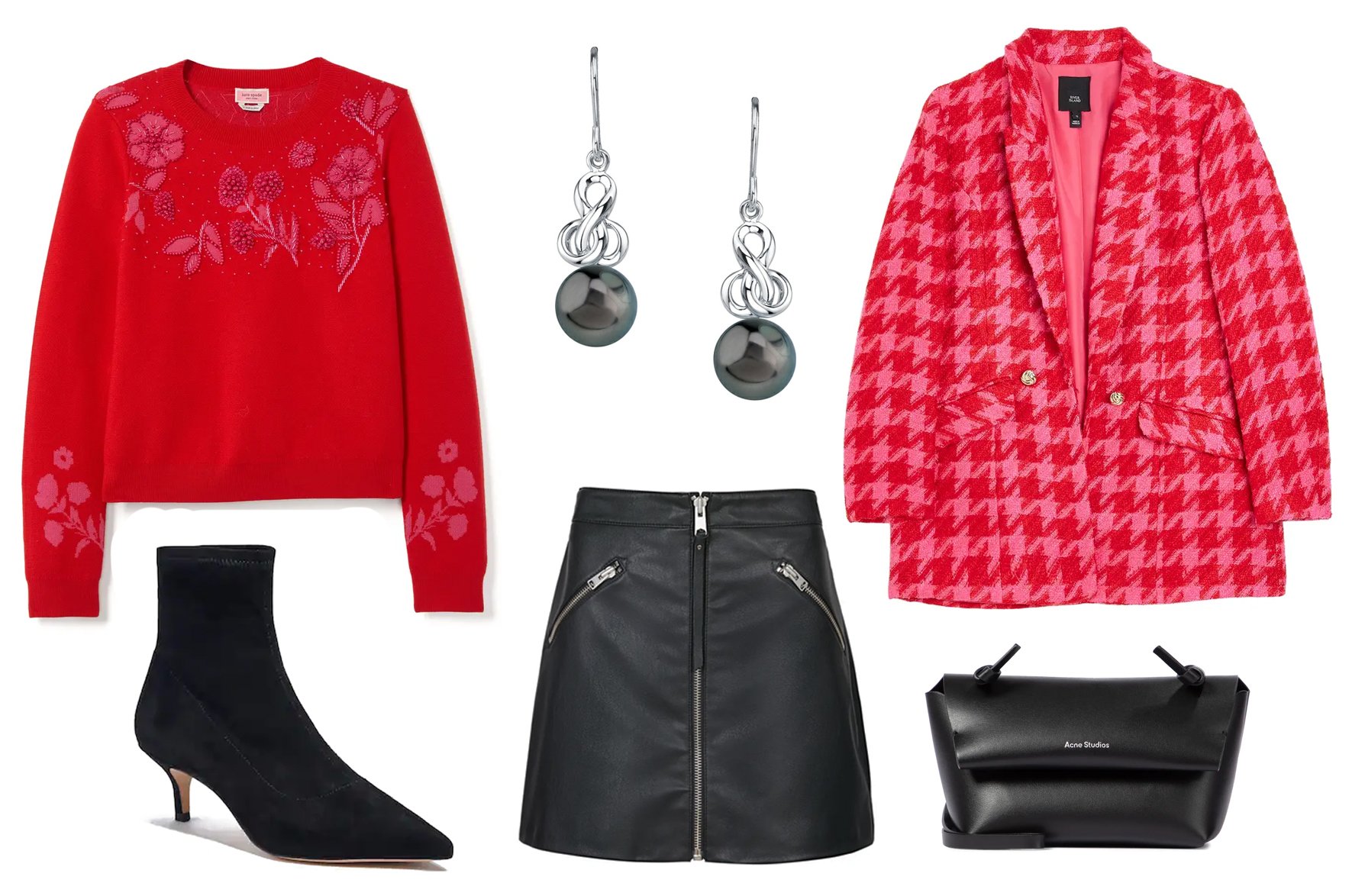 It’s settled: for Valentine’s Day, you go all out. Ditching the reds looks like a compromise you aren’t prepared to make. In spite of everything, what’s a date evening outfit on essentially the most romantic day of all with out shiny, daring, head-turning reds. Combine in some pinks, a enjoyable combo of patterns (good day, florals & houndstooth), dangling drop earrings and traditional blacks. For an additional word of edgy attraction, seize a mini leather-based skirt for that excellent fusion between candy and daring.