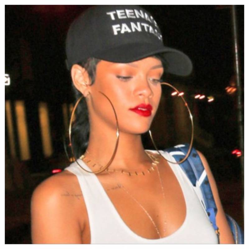 Even in informal gear, these outsized hoop earrings make Rihanna regarded dressed up and attractive. Picture Supply: Frugal Finds NYC