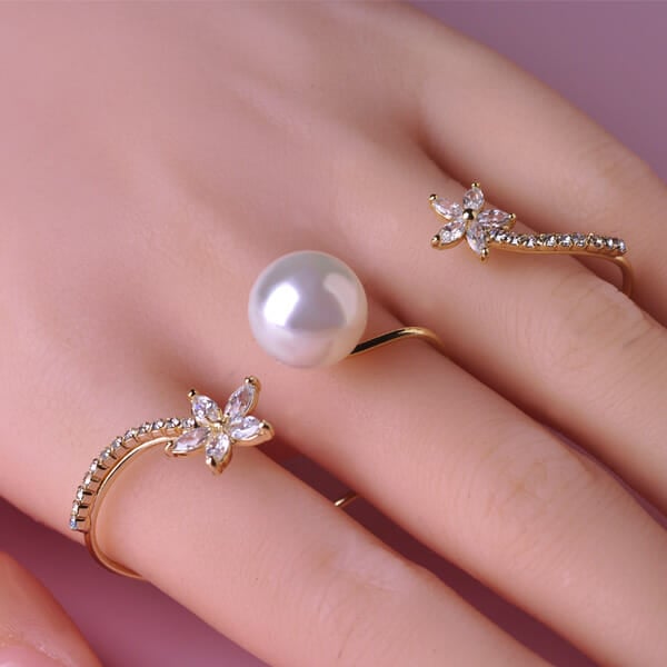 Try this rhinestone and pearl three finger ring from Ali Specific