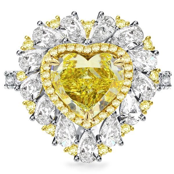 Two Tone Triple Row Yellow Coronary heart Minimize Engagement Ring