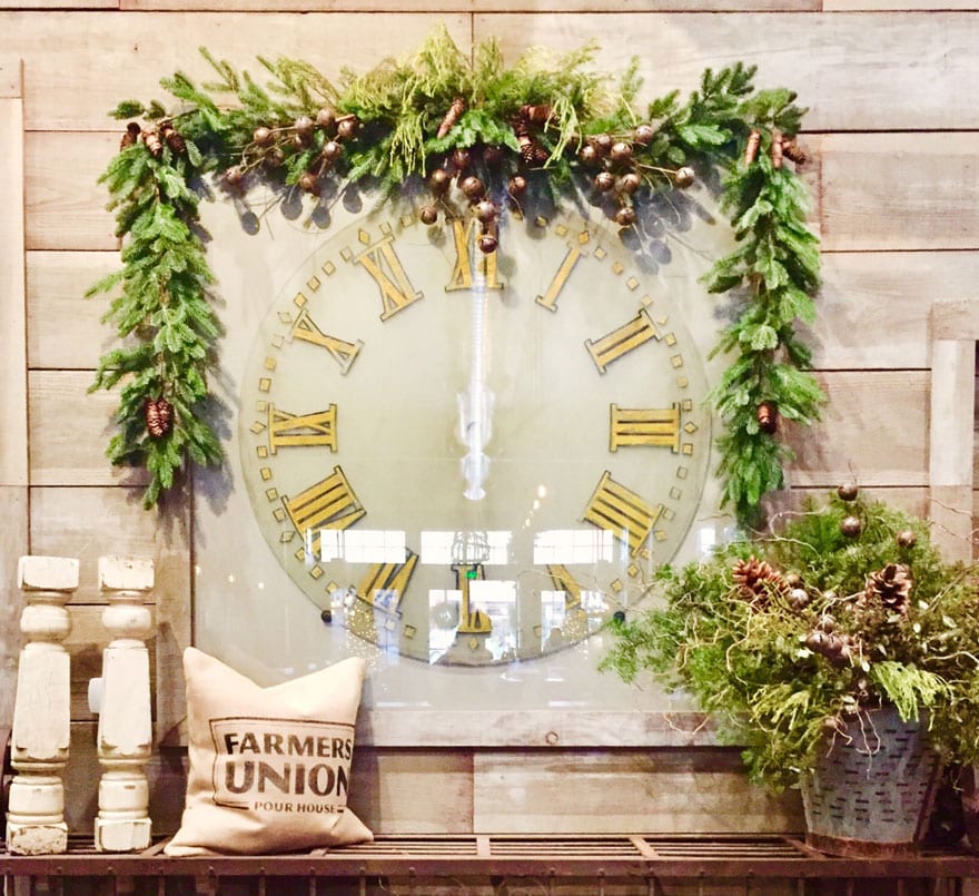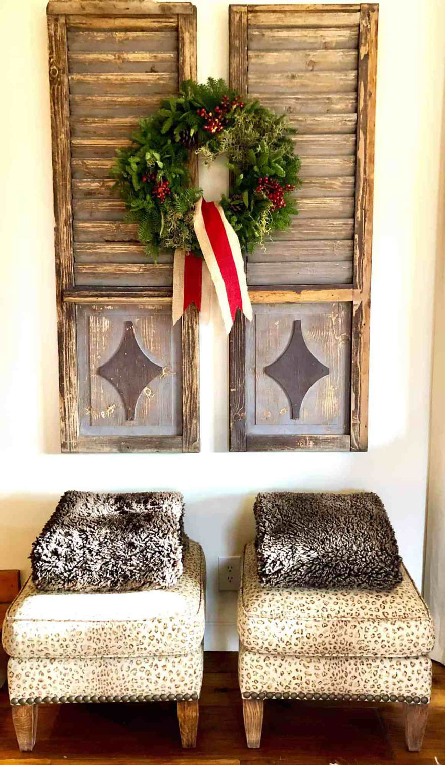 Cindy makes use of easy wreaths from Costco and provides a number of foraged issues like moss and berries (or perhaps they’re fake) with a large piece of ribbon for a stunning association above a pair of animal print ottomans and completely folded cozy throws.