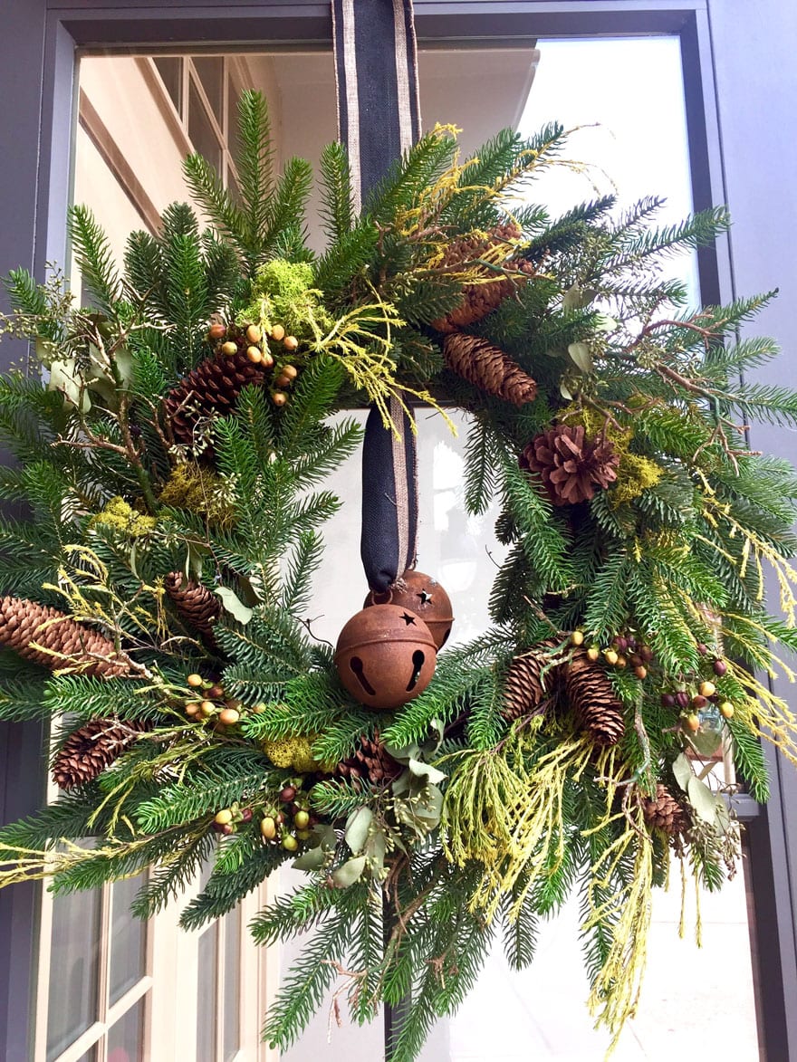 One other Costco wreath with classic bells and some foraged greens and pinecones. So easy, however stunning. Be sure to take a look at Cindy’s weblog and web site for extra inspiration or for assist together with your subsequent design mission. Thanks Cindy for sharing your private home and images!
