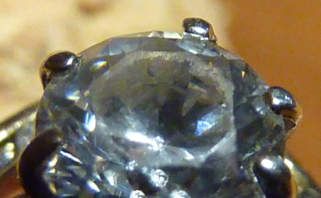 Note the Out of Focus Looking Ring Around the Flat Table of This CZ. That is worn away CZ material. They Don’t Hold up.