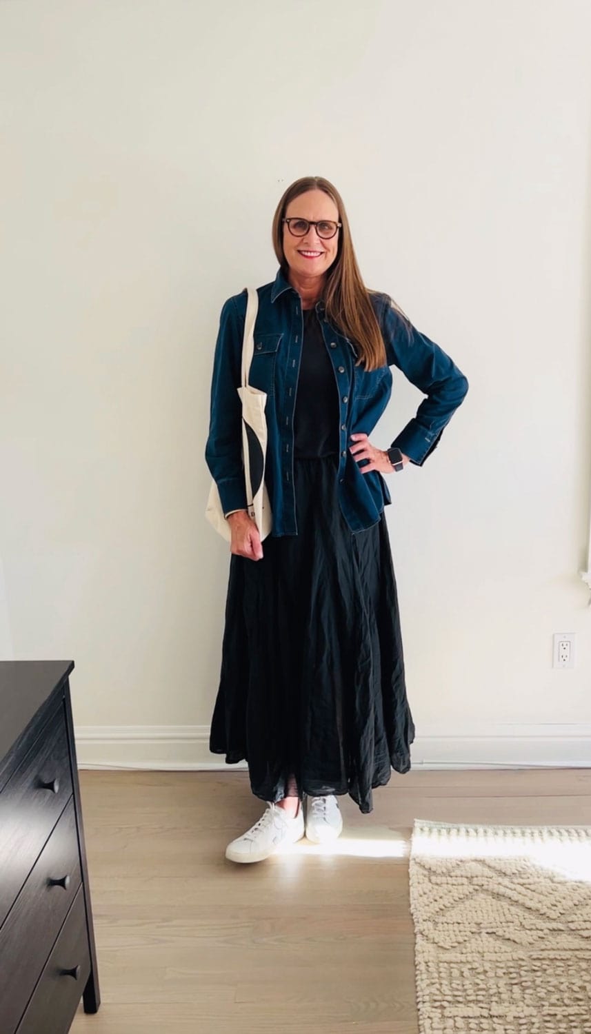 This CP Shades Lily Maxi skirt can be worn with flats, Birkenstocks, or sneakers. Cindy often wears the Lily skirts and shows how versatile this piece is in posts like this one.