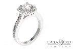 The halo widens the look at the center of your engagement ring design. Your ring can taper from there giving a very feminine look and give a good balanced look on your finger.