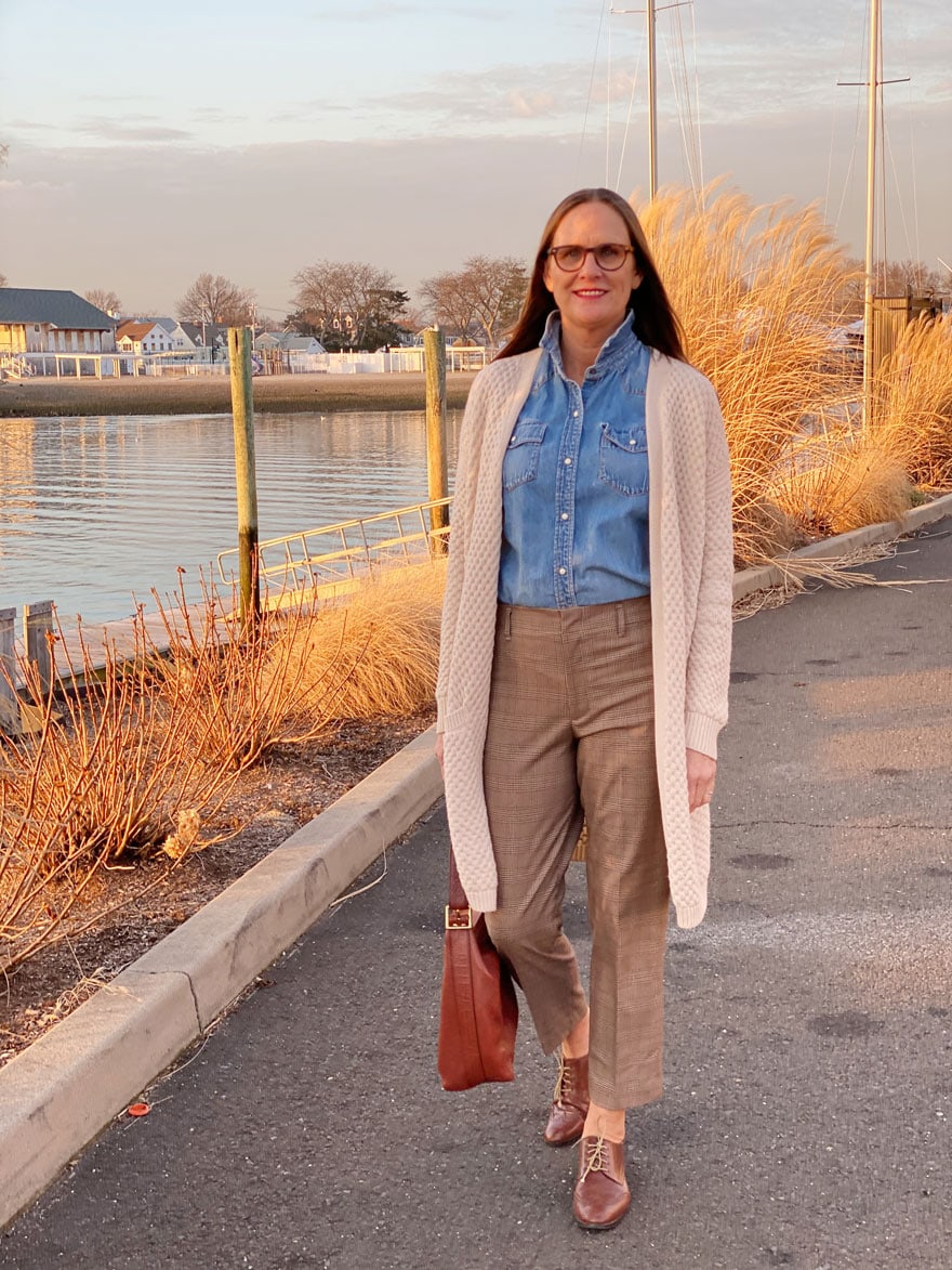 I’m not at all a fashion blogger, but I’ve always loved fashion. Wearable fashion, that is. I have had the same style my entire adult life and finally I feel like we’ve entered a time when really anything goes. I remember when I lived in a suburb of DC when our kids were young. I was wearing pair of tan thin whale corduroy pants, a dark gray cashmere v-neck sweater and red leather oxfords. And I thought I looked good. Ha! Because here’s the thing, oxfords were not really “in style” for women in the late 90s. I was shocked when a friend of mine (looking down at my shoes) started to tell me about a shoe sale and then proceeded to tell me that you can turn in any pair of shoes and get a credit toward a new pair of this particular brand. I cannot even remember the brand or even the kind of shoe, but I did know that I loved my red leather oxfords from Cole Haan. So what I’m saying is…I love that every style is in right now. I lean heavily toward menswear and finally, I’m sort of in-fashion, dare I say?