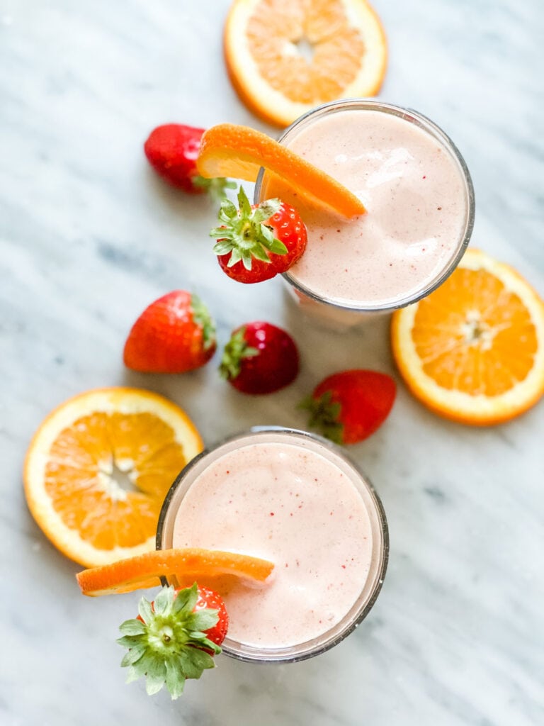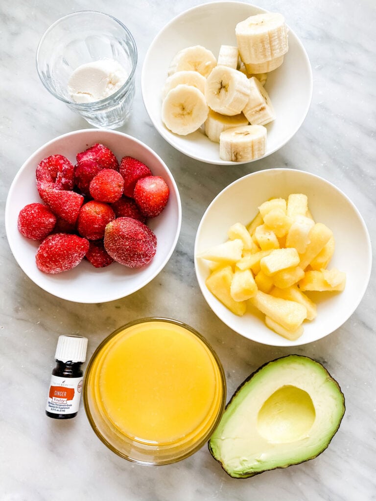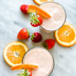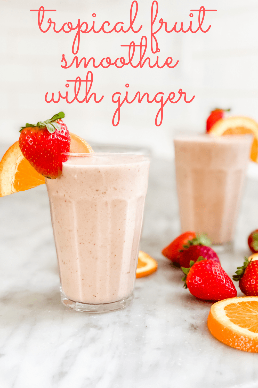 This smoothie is so good! It reminds me of a drink you would order poolside at a resort!. All that’s missing is an umbrella!