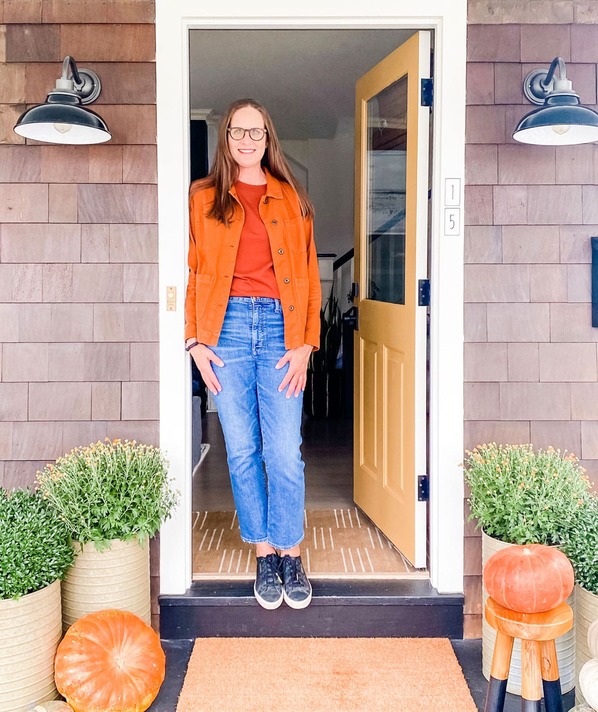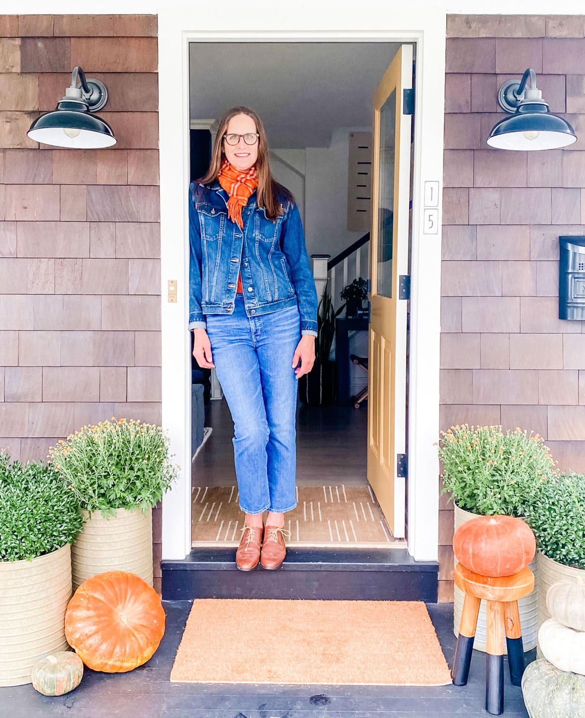 I love fall colors! It makes me wonder why my house isn’t in shades of rusts, browns, and mustard golds. Years ago during the shabby chic days, it was. I may have to revisit those colors in my home, but for now, I’ll just wear them! I’m joining my friends for a little fall fashion. And just like in my home, it’s super casual, mixing in vintage with a little new and always with denim.